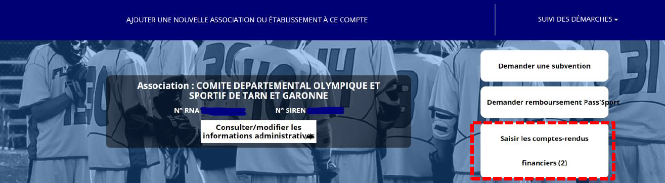 Une fois connectés sur Le Compte Asso, vous devez cliquer sur « Saisir les comptes-rendus financiers ».